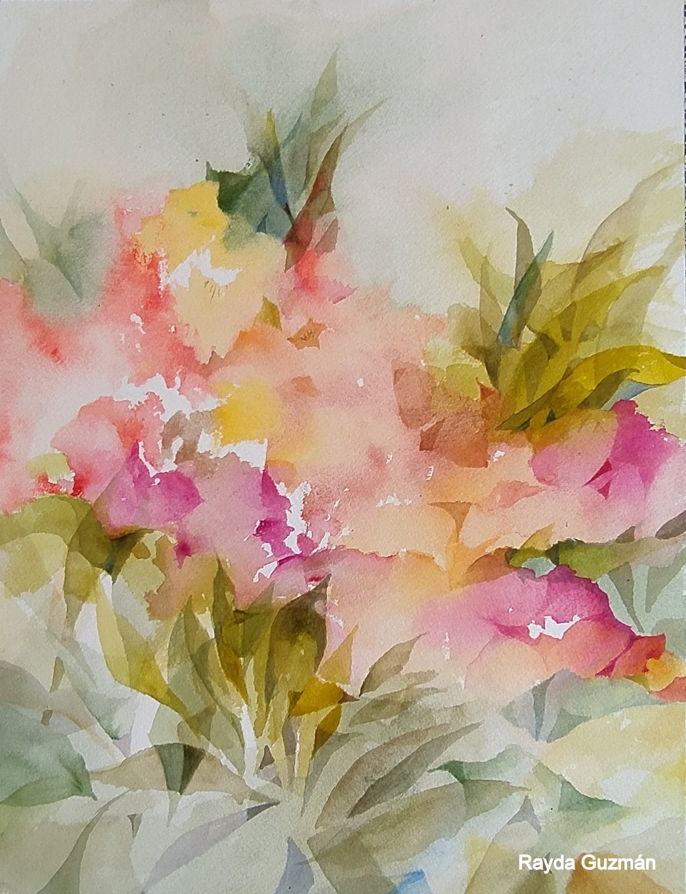 Acuarelas que recuerdan flores etéreas, semi abstractas.